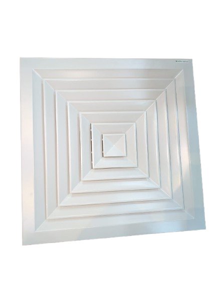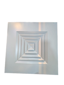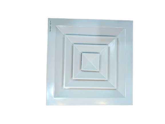 Green Air Cooling Solution Square Diffuser that are fabricated using high grade aluminum sheet with multiple air outlets, placed in a single plane. It provides excellent diffusion as the air exits in all four directions and hugs the ceiling to provide efficient mixing and performance. It features a removable core which provides for easy installation and for easy access to the Plenum/Damper.