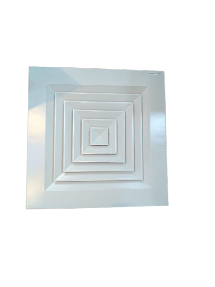 Green Air Cooling Solution Square Grid Ceiling Diffuser that are fabricated using high grade aluminum sheet with multiple air outlets, placed in a single plane. It provides excellent diffusion as the air exits in all four directions and hugs the ceiling to provide efficient mixing and performance. It features a removable core which provides for easy installation and for easy access to the Plenum/Damper. Diffuser’s Outer frame and central core are manufactured from high quality Aluminium sheet. The Standard finish is Powder Coated in Asian paint Off-white Other Color Options are available at an extra price . An optional Diffuser damper or Plenum may be ordered for supply applications.